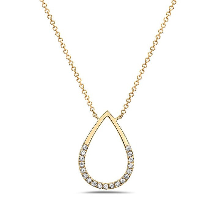 14 Karat Yellow Gold Bassali Teardrop Shaped Open frame Diamond Necklace